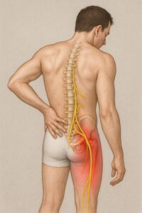 - 梨状筋症候群: お尻の奥にある梨状筋という筋肉の下を坐骨神経が通っており、この筋肉が硬くなったり炎症を起こしたりすることで神経を圧迫します。