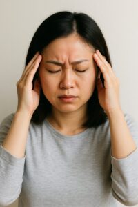• 特徴: ズキズキと脈打つような痛みで、片側または両側のこめかみから目の奥に現れることが多いです。光や音に敏感になったり、吐き気を伴ったりすることもあります。